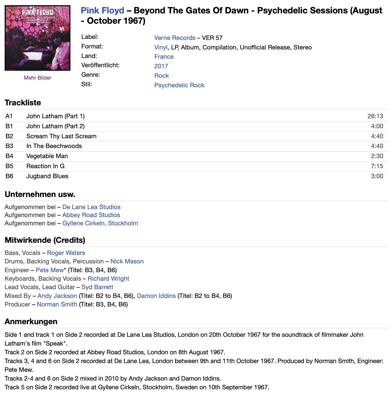 Wie ich mal gelesen hatte, sind die Aufnahmen auf dem Bootlegs "Beyond The Gates Of Dawn", schlichtweg Kopien vom Box-Set um sie auf Vinyl anzubieten.